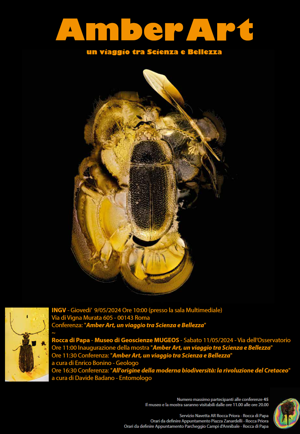 Update 28/04/2024: I am particularly happy to have the opportunity to present two conferences at the INGV National Institute of Geophysics and Volcanology (Rome, Italy) on Thursday 9/05 and Saturday 11/05 (at the Museum of Geosciences in Rocca di Papa). An exhibition of my photographs, a multimedia section, and the two conferences will accompany you into the fascinating world of amber and its inclusions, observed through the eyes of extreme macro-photography. I look forward to seeing many of you there!