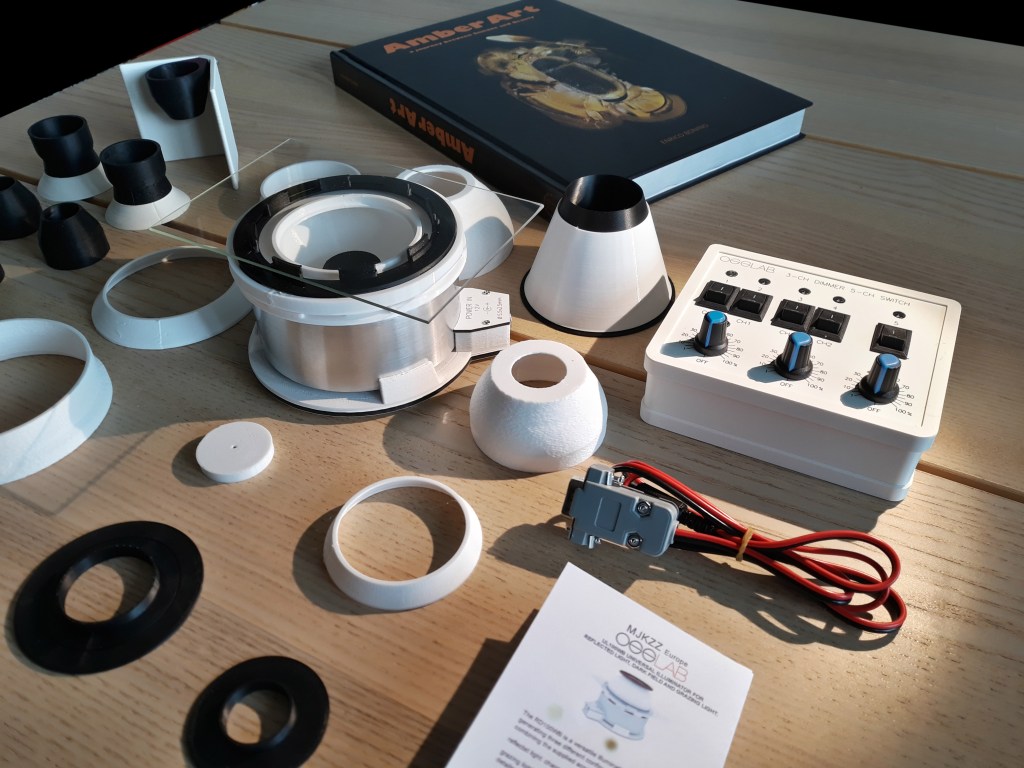 This system is built around a 10-watt LED illumination with a color temperature of 6500K (4500K and 6500K are available on the larger model), whose light is reflected on the internal aluminum cylindrical walls and the inclined walls of the reflector (made of PETG, which has interesting heat-resistant properties), in the function of the set-up selected.