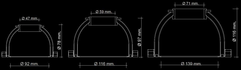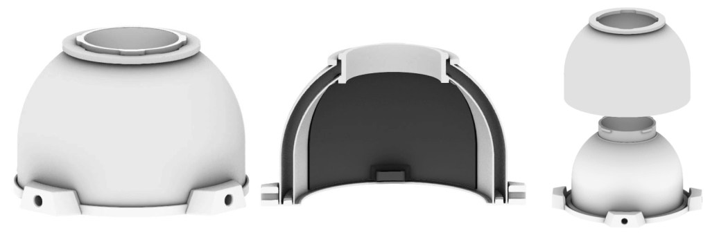 The height of the three domes varies between 78mm to 97mm to 116mm, with the internal diameter between 92mm to 116mm to 139mm, and the top hole allows easy access to large-diameter lenses (diameter between 47mm to 59 to 71mm, respectively). In case you want to maximize the reflective surface, you can insert a perforated disc of the diameter of the lens you use.