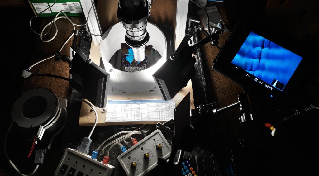 Butterfly scales: the stack is composed of 330 images, with an acquisition step between one frame and the next set to 0.5µm; the illumination used was based on continuous light, through two 20W LED panels and exposure time set to 1″. The cylindrical diffuser is “home-made” with white drawing paper.