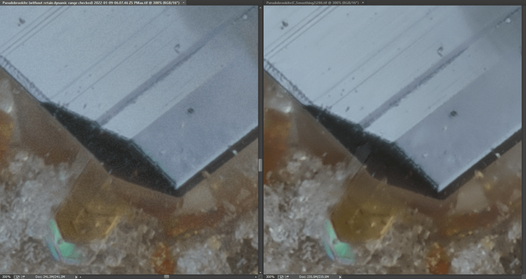 It is impressive to observe the difference in calculation times between the two programs. Helicon Focus turns out to be monstrously fast in providing the final output: there is no possibility of comparison between the two platforms.