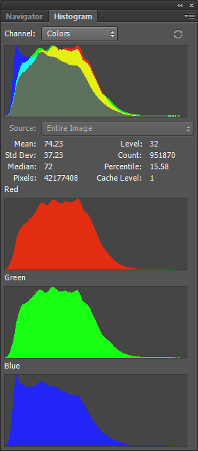 At the level of color distribution (unchecking the Retain extended dynamic range option when saving the .TIF format in ZS), the statistical values of the mean and median are very close, observing in the tails of the histogram that the HF output is slightly more shifted towards the light tones, and towards the dark tones in ZS.