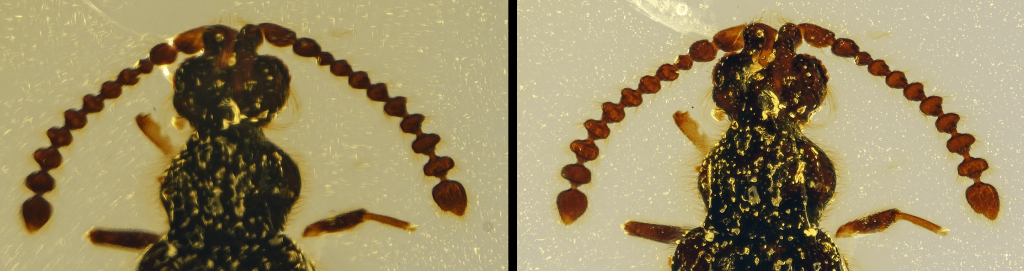 Above, a small Hymenoptera Ceraphronid (parasitic wasp)