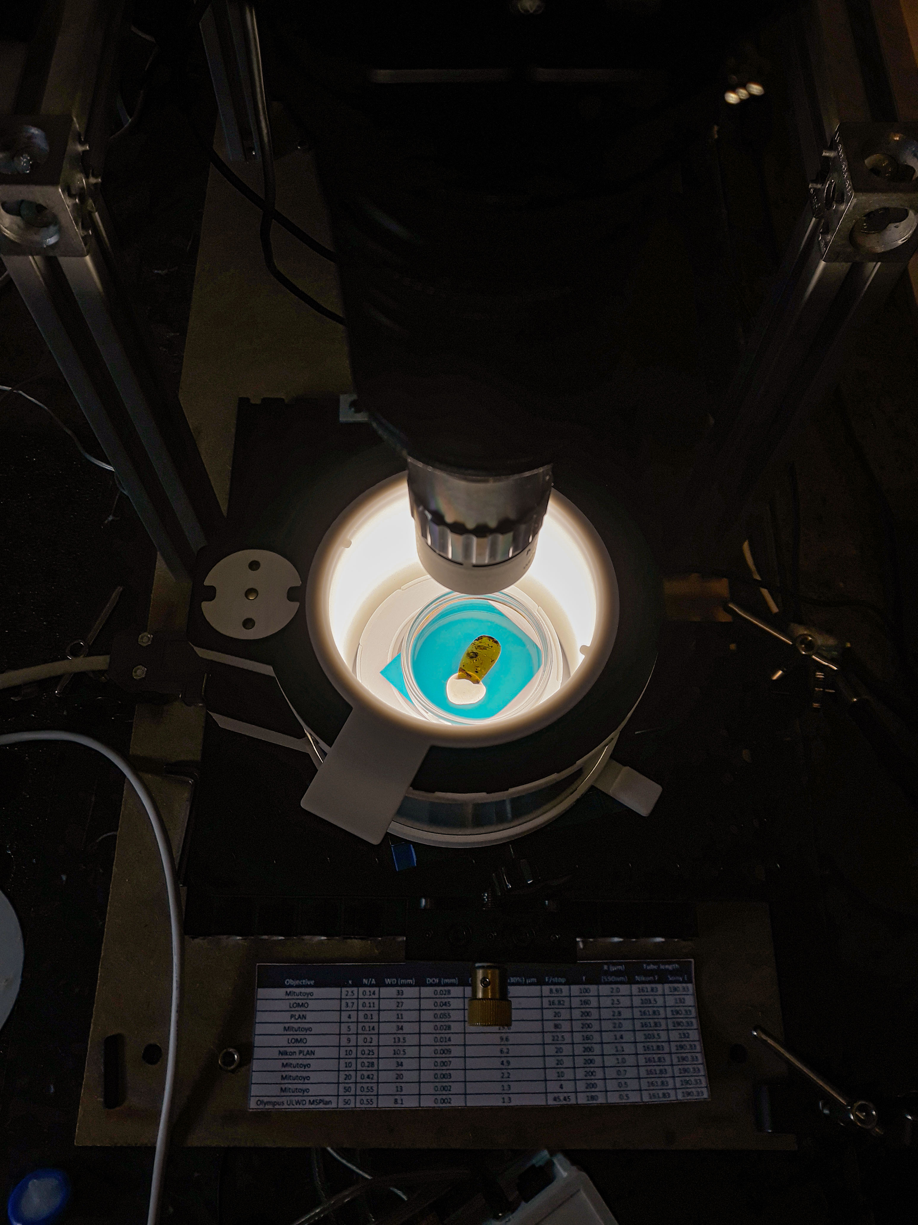 The best solution is to use glycerin. The refractive index of this liquid is 1.472, while that of amber is about 1.54; the very close values of the two substances make it possible to minimize the phenomena of light diffraction, hide the majority of scratches and fractures, and create the best working conditions for obtaining correct images. In the absence of glycerin (and a cheaper solution), sunflower oil can also be used, which has a refractive index between 1.472 and 1.476. You can also use immersion oil for microscopy (refractive index of 1.516, even closer to that of amber), but the price of the latter and the need to use a relatively important quantity (depending also on the size of the amber), make this technique relatively expensive. Finally, the use of a polarizer can help to eliminate any reflections present on the surface.