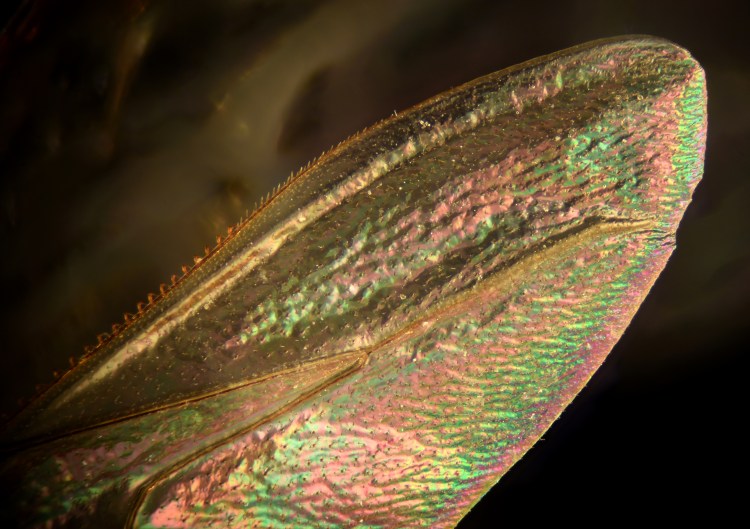 The wings of insects hide unbelievable details… a very dense network is visible, to strengthen the architecture for the fly, tiny hairs and small hooks on the borders…