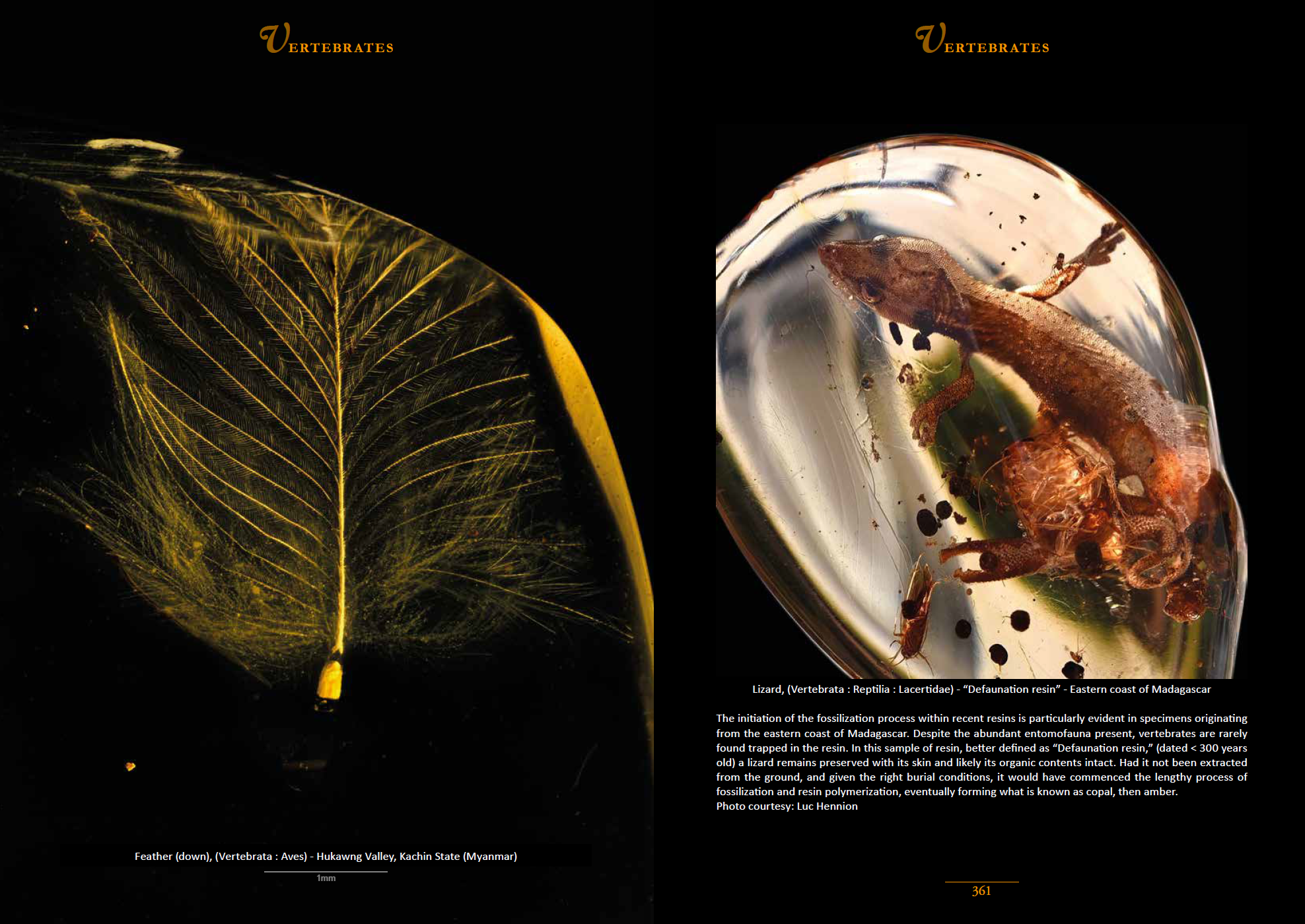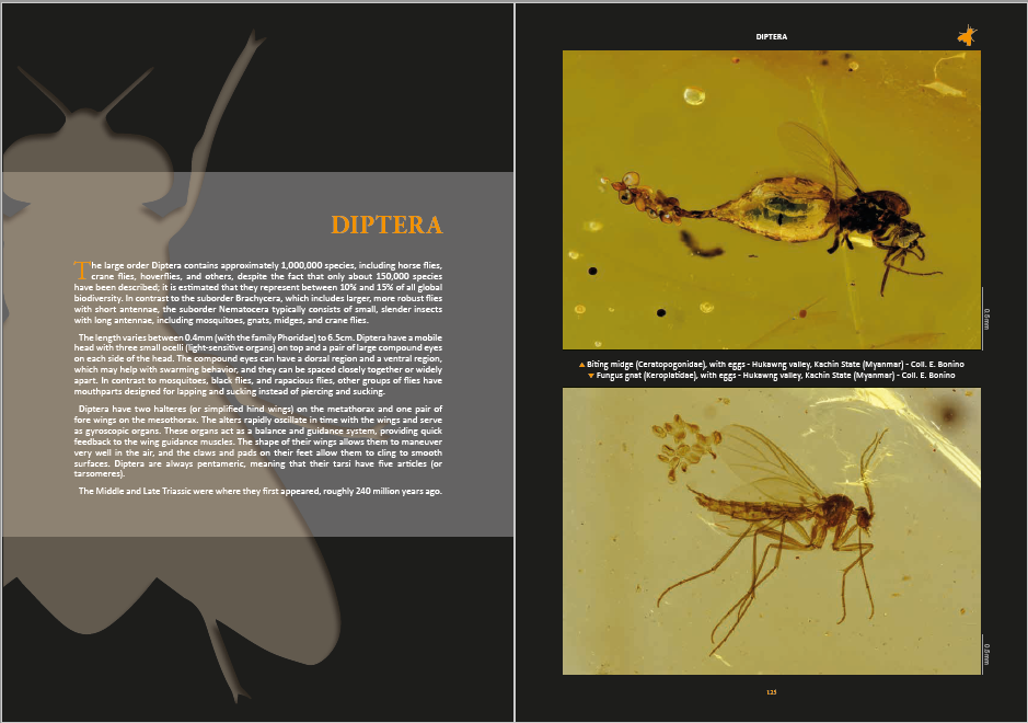 Some specimens are entombed in “young” amber, often called copal and in the present volume also referred to as Defaunation resin. Examples are provided with photographs of insects in copal from Madagascar. Lastly an entire chapter on abiotic inclusions is included in this volume. The entire book makes a wonderful read, not only to scientists and artists, but also to those that wish to glimpse a bit of our world as it was 20 to 100 million years ago.
