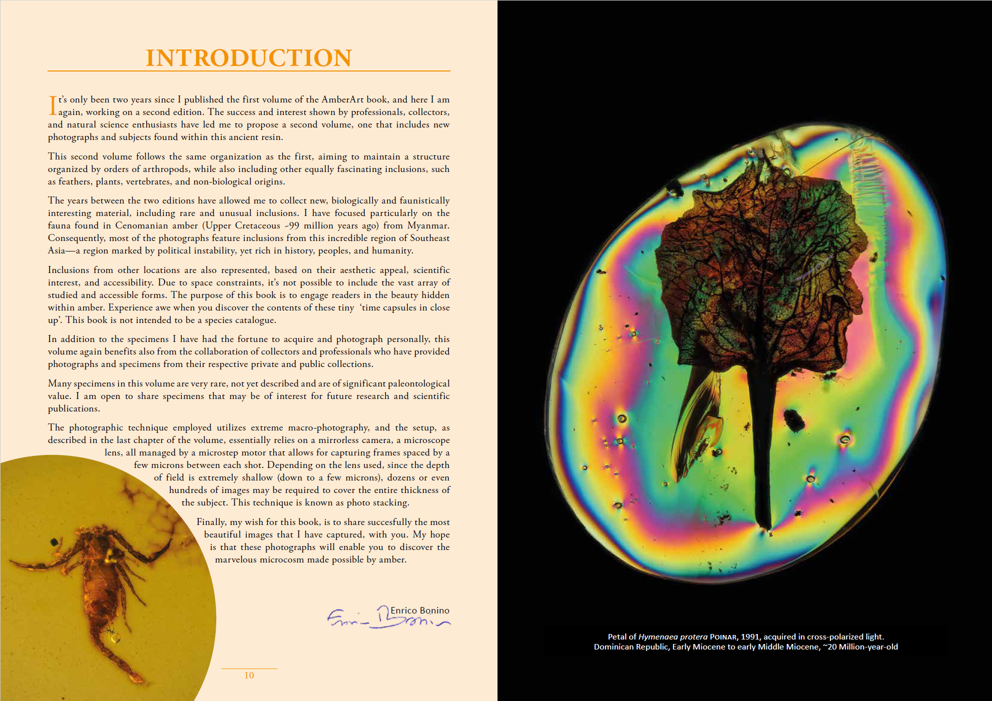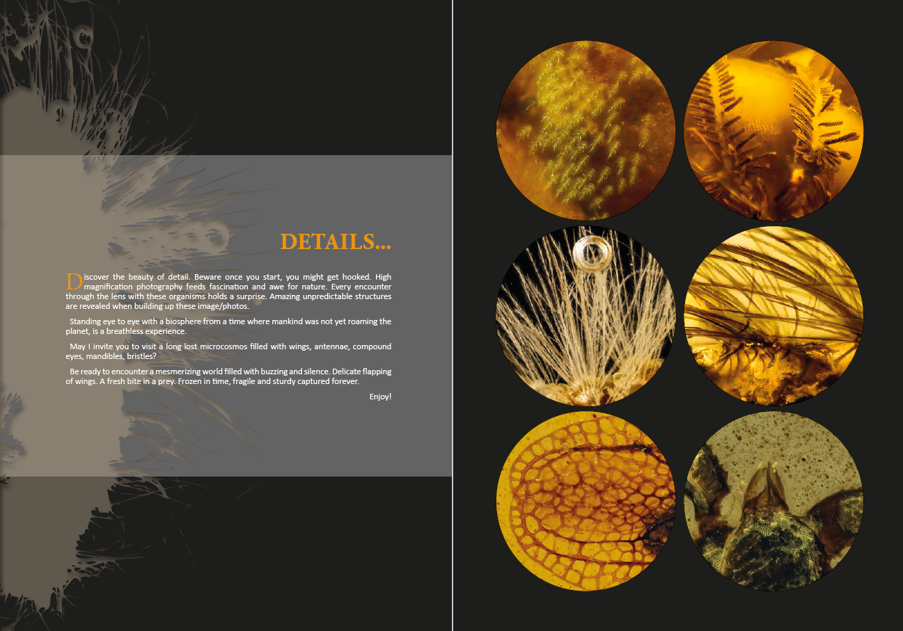 AmberArt, a journey between Science and Beauty, takes you on a virtual tour highlighting the beauty of organisms encased in amber. With about 200 plates and more than 300 beautifully photographed animals and plants, you will encounter a mesmerizing world that was once buzzing with life.