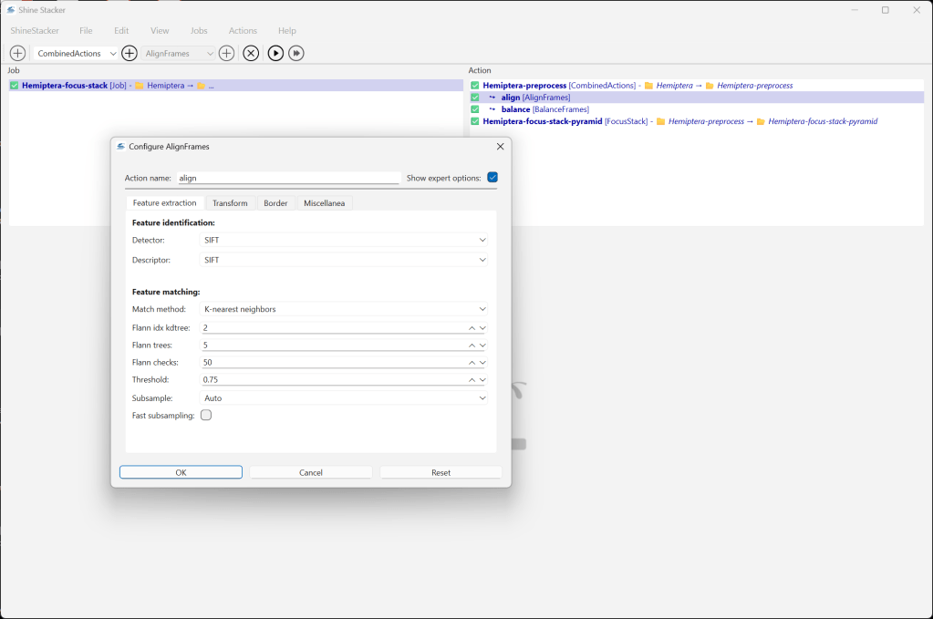 Unlike Helicon Focus (and to a certain extent, Zerene), ShineStacker allows you to adjust a wide range of settings — including: